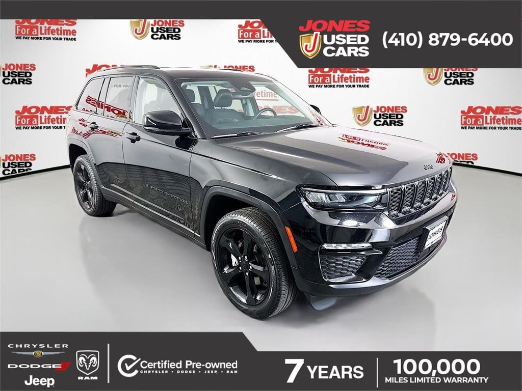 2023 Jeep Grand Cherokee Certified. Diamond Black Crystal Pearlcoat 4D Sport Utility 4WD 8-Speed Automatic 19/26 City/Highway MPG CARFAX One-Owner. Odometer is 4748 miles below market average! 19/26 City/Highway MPG Maryland State Inspection, 4WD.